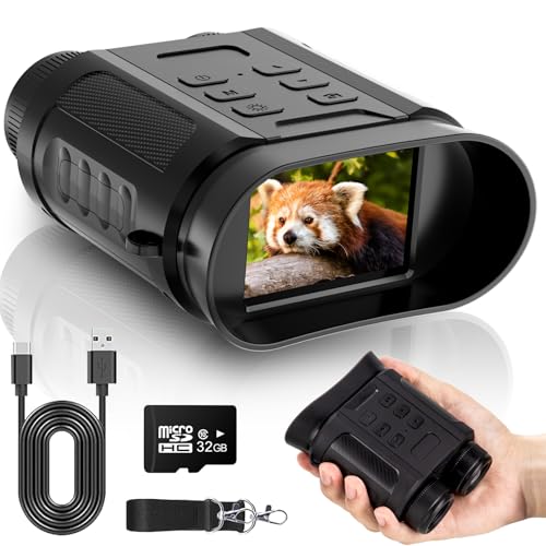 CamZeste Infraröd nattsynkikare, 4K-video och 48 MP-bild, 8 x digital zoom, 300 m, 2 500 mAh, uppladdningsbar infraröd kikare med 32 GB kort, för djurobservation
