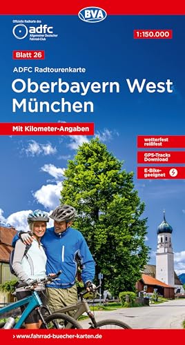 BVA ADFC Radtourenkarte Oberbayern West München 1:150.000: reiß- und wetterfest, E-Bike geeignet, GPS-Tracks Download, mit Kilometer-Angaben: 26