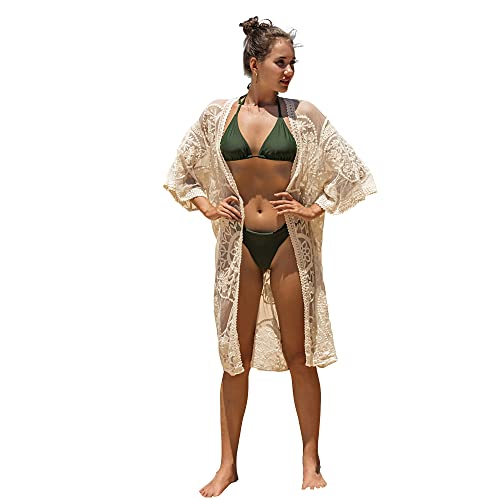 MIXIDON Bikini cover up cardigan sommar kimono dam strand cardigan pareos strandklänningar för kvinnor spets kimono (Ris)