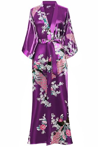 BABEYOND Kimono-morgonrock, för dam, lång pyjamas, satinkimono med bälte, one size