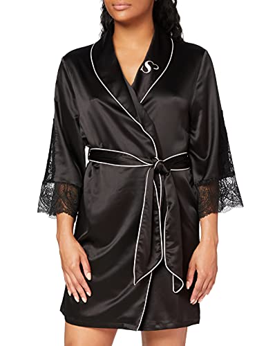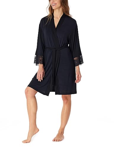 Schiesser Dam kimono med spets 90 cm längd sensuell premium badrock, svart, M, Schwarz