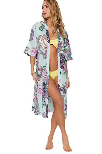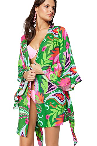Trendyol Dam kimono och kaftan-grön-avslappnad, Grön-flerfärgad, S