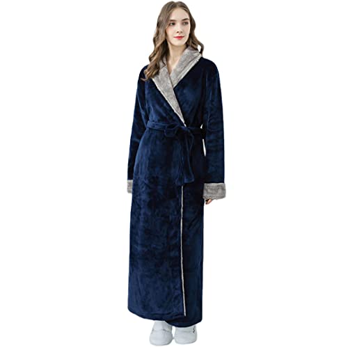 Män vinter lång tjock varm rutig flanell badrock herr lyxig kimono badrock dam sexiga morgonrockar herr termisk morgonrock dam päls marinblå XL