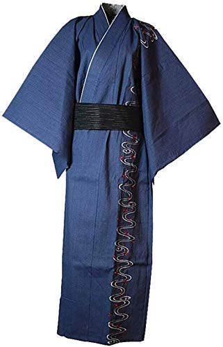 Double Villages Men's japansk yukata kimono hemrock pyjamas yukuata dressing plagg bomull, Blå B, L