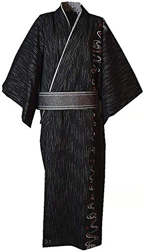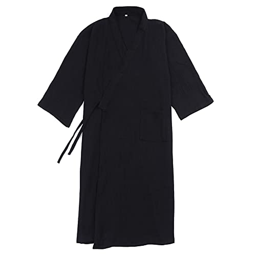 Double Villages Men's japansk yukata kimono hemrock pyjamas yukuata dressing plagg bomull, Svart A, L