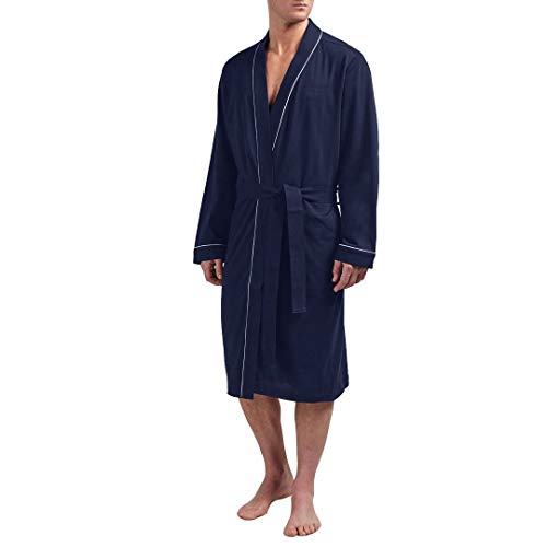 HOLOVE Herr ren bomull fladdermusbyxor lätt kimono, sjal krage spa morgonrockar mjuka nattkläder, marinblå, L-XL