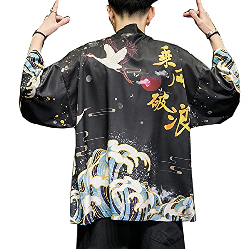 Seidarise Haori jacka för män, kimono, cardigan, Yukata Noragi Happi kappa, herr, 1-svart3, L