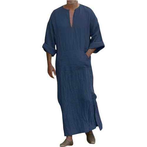 Herr muslimsk kimono långärmad öppen kaftan arabisk Dubai Thobe Abaya herr Jubba Thobe arabisk thobe för män bomull linne kaftan långärmad muslimsk herrkläder långärmad rock Henley skjorta, BU2, 4XL