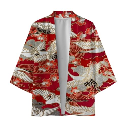 CIZEUR Kimono japansk herrjacka vintage kinesisk stil casual skjorta herr 3/4 ärm storlek stor födelsedagspresent, Massor av immortella kranar, M