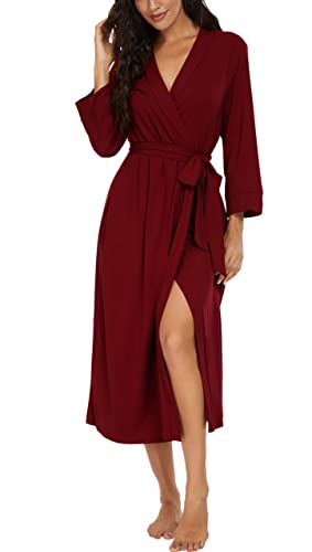 PrinStory Dammorgonrock, lätt 3/4 ärmar, morgonrock, v-ringad, kimono, kläder, långa nattkläder, Vinröd, XL