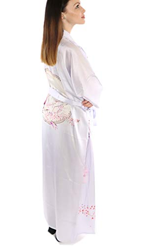 Prettystern dam golvlängd 100% silke kimono morgonrock morgon körsbärsblom sakura silvergrå L05