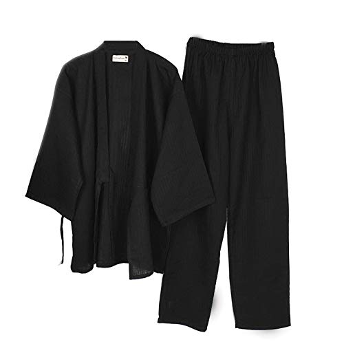 Herrkläder i japansk stil ren bomull kimono pyjamas kostym morgonrock set-B