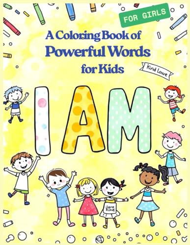 I Am, A coloring book for powerful words for kids (GIRLS): Fun Positive Affirmations, Mindfulness Activities & Coloring Pages for Confident, Kind & Happy Kids Ages 4–8