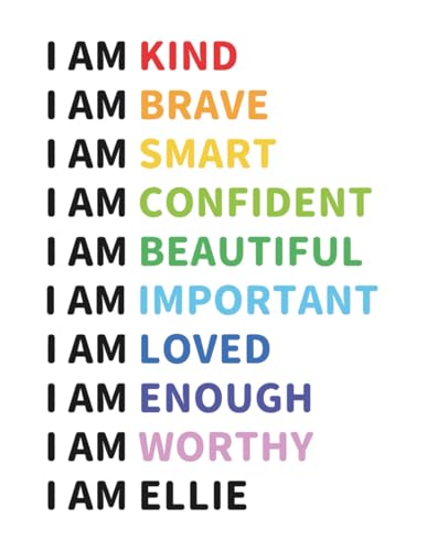 Ellie - Personalized Composition Notebook Journal for Girls with Positive Affirmations: Kind, Brave, Smart, Confident, Beautiful, Important, Loved, Enough, Worthy