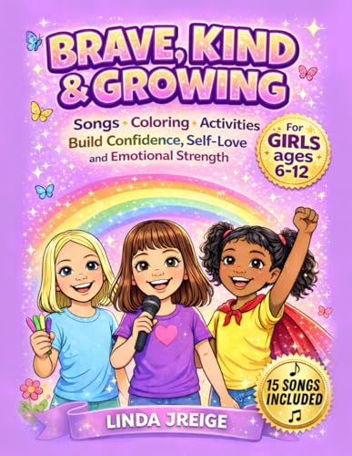 Brave, Kind & Growing: A Positive Mindset Book with Songs, Coloring Pages and Activities to Build Confidence, Self-Love and Emotional Strength for Girls Ages 6–12