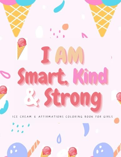 Ice Cream Coloring Book for Kids with Positive Affirmations I am Smart, Kind & Strong: Coloring Book for Girls Age 4-8 & Up