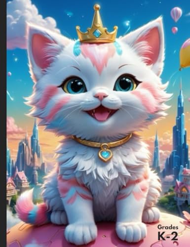 Primary Composition Notebook for Grades K-2 – Adorable Royal White Kitten with Crown in a Magical Fantasy World: K-2 (Kindergarten to 2nd Grade)