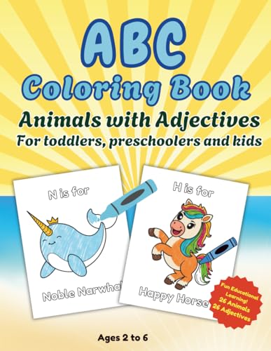 ABC Coloring Book:Fun Animals & Adjectives for Toddlers, Preschool & Kindergarten kids(Ages 2-6) |Cute, Simple, Bold & Easy Alphabet Coloring Book: ... - Early Learning Activity Book Kids