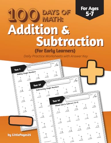 100 Days of Math: Addition & Subtraction Workbook for Early Learners — Daily Practice Worksheets with Answer Key (Ages 5–7, Kindergarten to Grade 2)