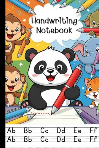 Cute Animal Handwriting Notebook for Kids: Panda, Monkey, Elephant & Tiger Cover | 6x9 in, 110 Pages | Primary Ruled Journal for Kindergarten to Grade 2