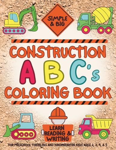 Construction A B C’s Big and Simple Coloring Book: Learn Reading and Writing for Preschool Toddlers and Kindergarten Kids Ages 2, 3, 4, & 5
