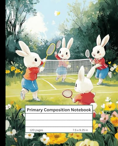 Primary Composition Notebook: Draw Journal for Grades K-2 Kindergarten | Dotted Midline and Picture Space | 120 Pages 7.5" x 9.25" | Cute Animals Playing Badminton
