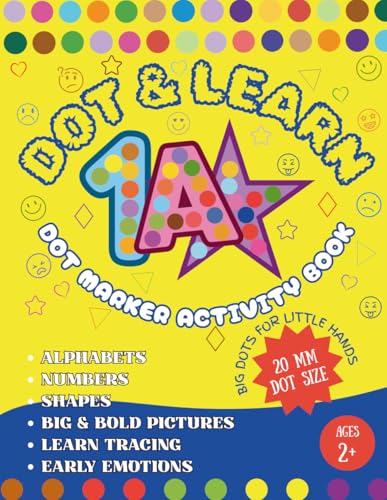 Dot & Learn: Dot Marker Activity Book: Toddlers, Kindergarten, Kids age 2+. Learn Alphabets, Numbers, Shapes, Early Tracing & Emotions. Cut Pages.