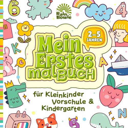 Mein erstes Malbuch für Kleinkinder Vorschule & Kindergarten von 2-5 Jahren: Einfaches, Lernen und Fröhliches Ausmalen | Süße Illustrationen, Buchstaben und Zahlen für Kinder ab 2