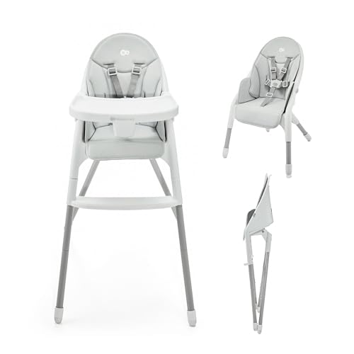 Kinderkraft BINCI Barnstol, babystol, lätt och vikbar med bricka, fotstöd och 5-punktsbälte, perfekt för små rum och resor
