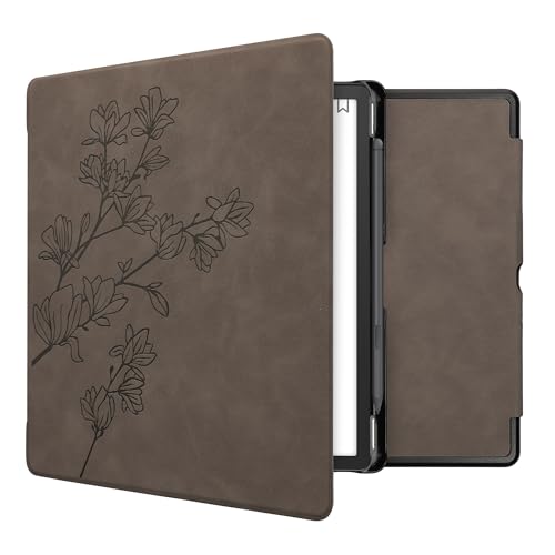kwmobile fodral kompatibelt med Amazon Kindle Scribe fodral – läsplatta fodral – magnolias grå