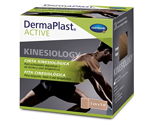 DermaPlast ACTIVE Kinesiologisk tejp, Neuromuskulär tejp för förebyggande och akut behandling av sportskador, Kinesio, Kinesiologi, Beige, 5cmx5m
