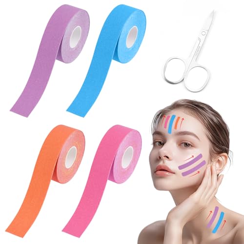 4 st Kinesio ansiktstejp ansiktslyftning kinesiologisk tejp ansiktstejp delikat rynkor, ansiktslyftande lappar minskar för att strama åt huden (2,5 cm x 5 m)