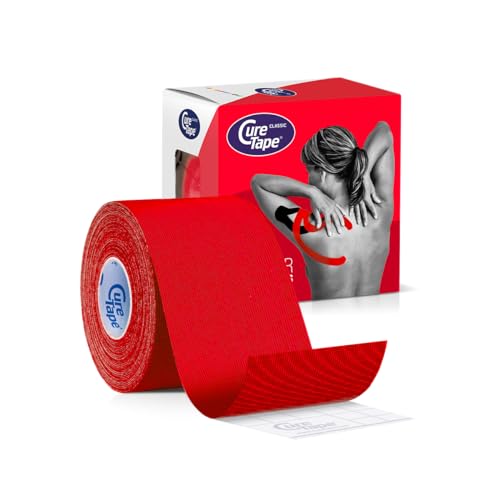 CureTape Klassisk 5 cm | Vattentät kinesiologitejp | Medicinsk kinesiologitejp | Öka rörligheten och prestandan | Minska ledsmärta | återhämta sig snabbare (röd)