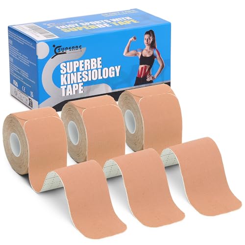 ALPIDEX Kinesiologiskt Tejp 1/3/ 6/12 Rullar Många Färger 5 m x 5 cm Ansökningsbroschyr Elastisk Kinesiologitejp Vattentät Hudvänlig Fysio Muskeltejp, Färg:Hudfärg, Kvantitet:6 rullar