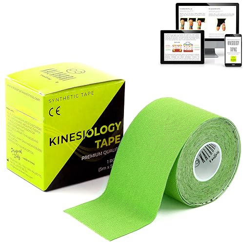 KALAHARI Professionell Kinesiologitejp plus E-bokapplikationer - Syntetisk Kinesiologiskt Tejp för bättre vidhäftning och ogenomtränglighet för vatten och svett- Kinesiology Tape (5cm x 5m) GRÖN