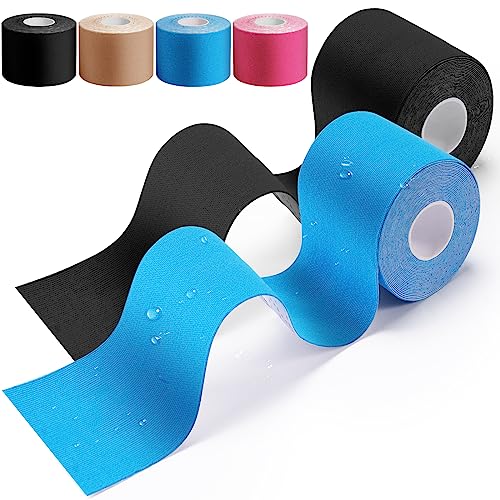 HONYAO® Kinesiologitejp, Kinesiology Tape (5m×5cm), Fysiotejp för Axlar, Rygg, Knän, Armbågar och Nacke, Sporttejp, Hudvänlig, Elastisk & Vattentät - Blå Svart