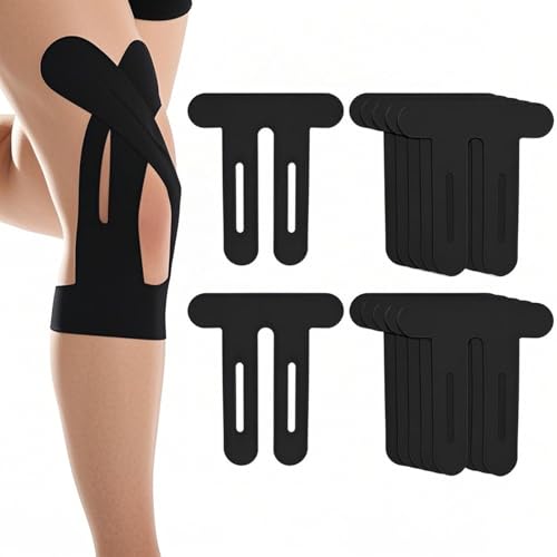 Yphzmtz 12 stycken förskurna kinesiotejp för knän, hudvänlig och andas | vattentät elastisk fysiotejp för knäsmärta | Förskuren (svart)