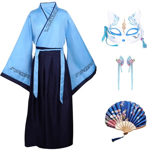 CRFASIBE Hanfu-dräkter för barn, kinesiska traditionella kläder, pojkar flickor kinesisk Cheongsam antik cosplay kostym med håraccessoarer, BLÅ, 150 cm