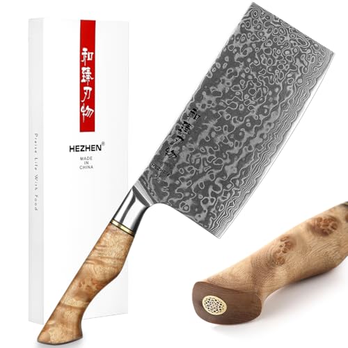 HEZHEN Köttyxor 18 cm, professionell kinesisk kockkniv, Damaskus stål kökskniv, grönsaker och köttskärkniv, ergonomisk Micarta-handtag