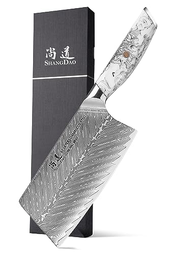 SHANGDAO 18 cm slaktkniv, professionell kinesisk kockkniv, bläcksmidd damaskusstål och harts tvätthandtag - full tagg