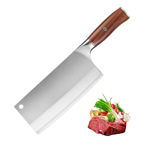 Imarku Hackkniv knivskarp bendödare kinesisk kockkniv, tysk högkolat rostfritt stål hackyxa, professionell kniv, högkvalitativ kökskniv med Pakka trähandtag - 18 cm