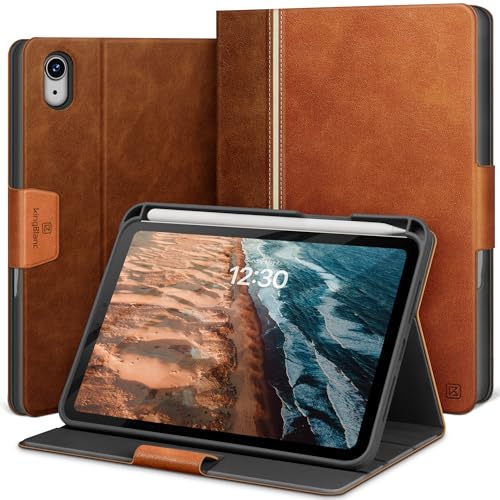 KingBlanc för iPad Mini 7 A17 Pro-fodral, iPad Mini 7:e/6:e generationen fodral (8,3 tum 2024/2021) med pennhållare, veganskt läderstativskydd, automatisk vila/väckning, justerbar vinkel, magnetisk