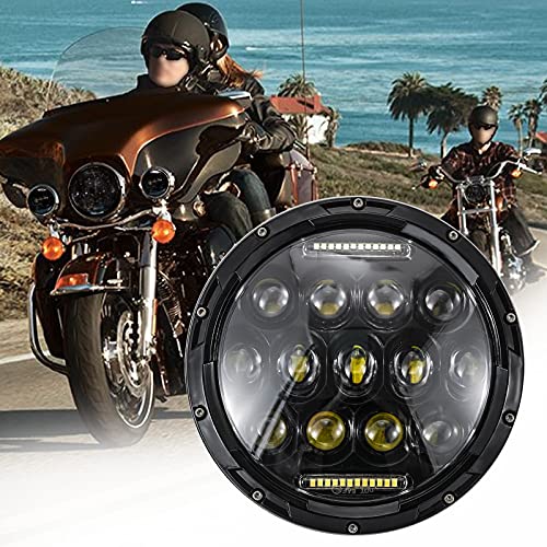 JMTBNO 7 tum 75 W LED motorcykel strålkastare rund hög/låg stråle strålkastare DRL strålkastare passar för Harley Road King Street Glide Softail Electra Glide/J-eep Wrangler JK TJ