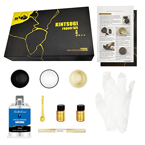 Kintsugi Reparationssats gulduppgradering, reparera din meningsfulla keramik med guldpulver och 50 ml lim och 57 g epoxy-kutty, Kintsugi hantverk, startreparation keramisk kintsugi kit