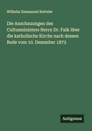 Die Anschauungen des Cultusministers Herrn Dr. Falk über die katholische Kirche nach dessen Rede vom 10. Dezember 1873