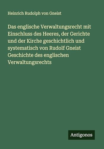 Das englische Verwaltungsrecht mit Einschluss des Heeres, der Gerichte und der Kirche geschichtlich und systematisch von Rudolf Gneist Geschichte des englischen Verwaltungsrechts