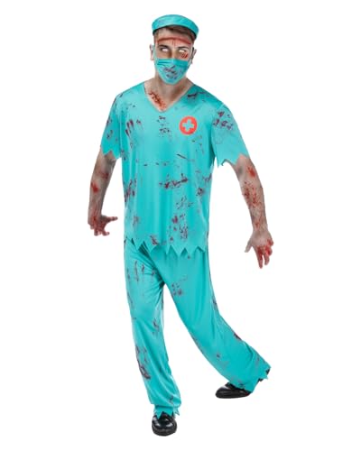 FIESTAS GUIRCA Blodig zombie doktor kostym för män - blodig kirurg - halloweendräkter för män, tonåring storlek 14-16 år