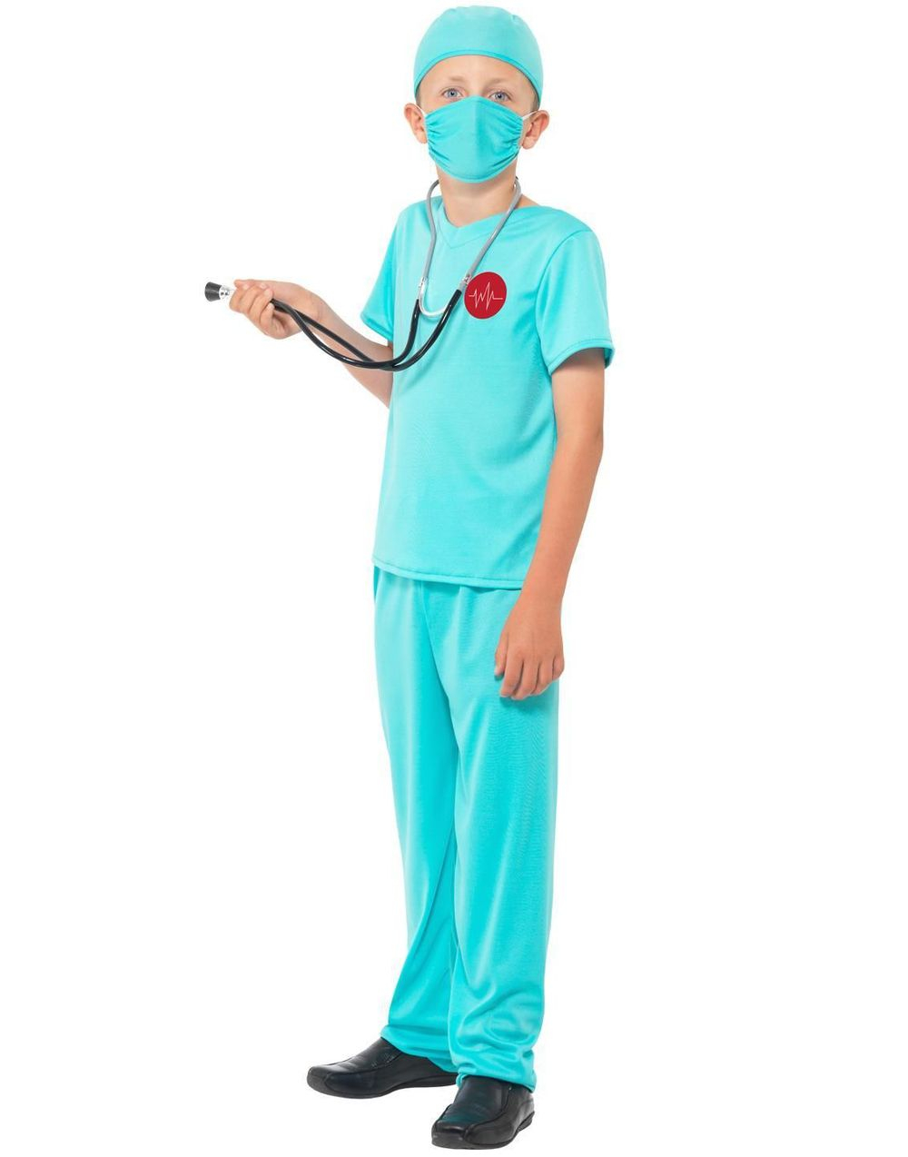Smiffys, barn pojkar zombie kirurg kostym, byxor, tryckt överdel, mask och stetoskop, storlek: L, 44032