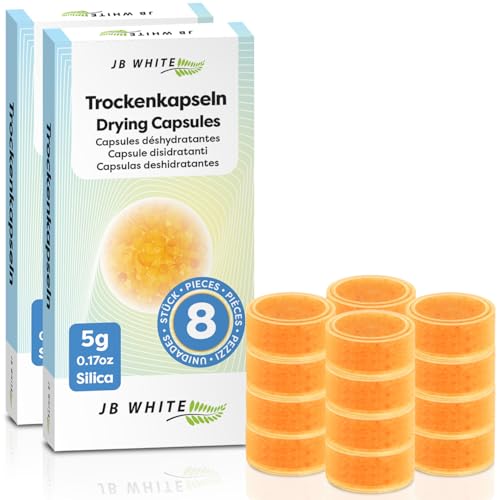 JB Vit 16 st torktabletter/kapslar för hörapparater och öronformar, orange kiseldioxid, mot fukt, hörapparat torkmedel kompatibel med Phonak, Cedis (16x, färgindikator, individuellt förseglad)