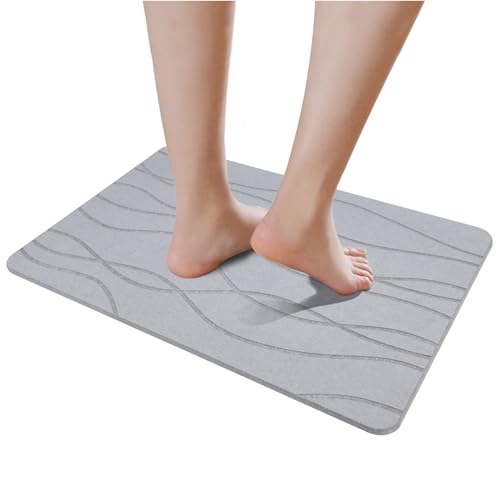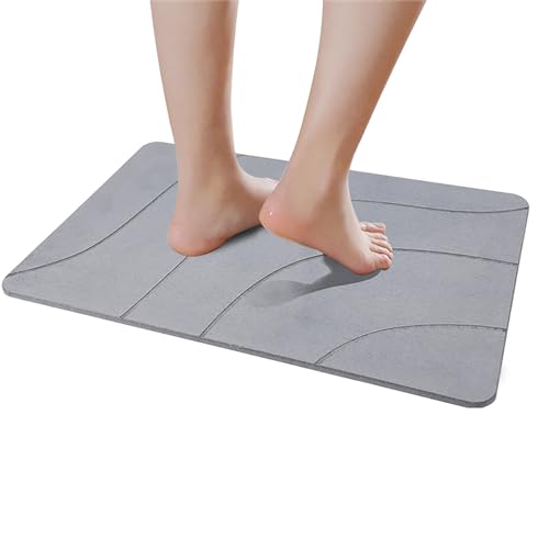 TOSORO – badmatta, kiselgur jord halkfri sten duschmatta – snabbtorkande absorberande badstensmatta – elegant och modern design, lätt att rengöra (23,5 x 15 grå)